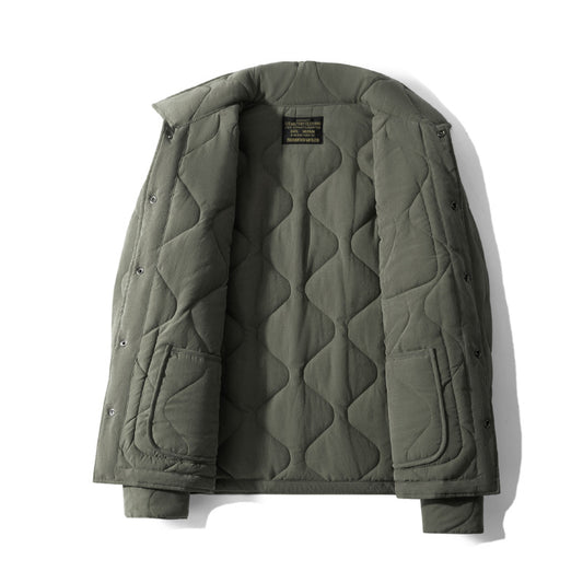 Cotton Polo Collar Jacket Cotton-padded Coat Retro Plaid Coat