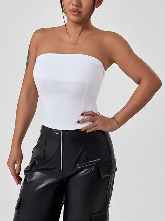 Crop Solid Color Tube Top, Sexy Strapless Top For Spring & Summer, Women's Clothing