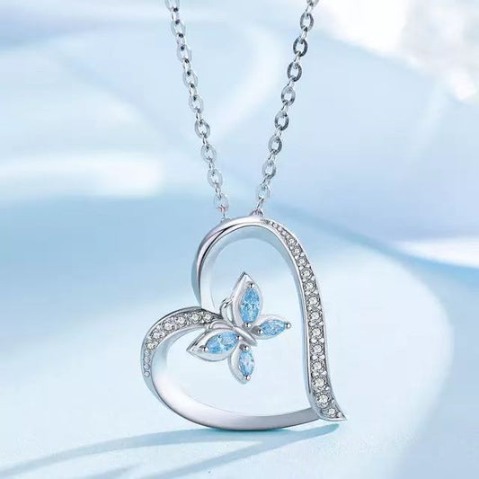 New Fashion Butterfly Heart Diamond-encrusted Pendant S925