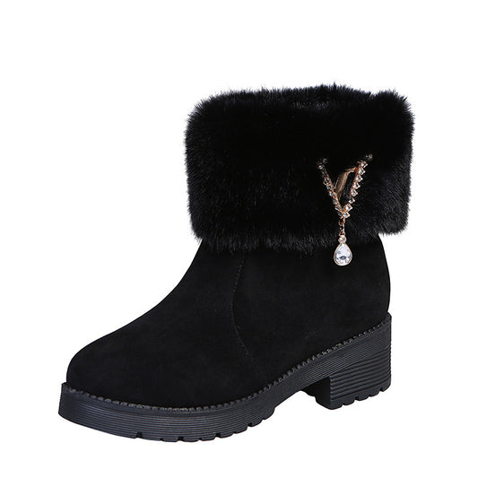 Plus Size Martin Boots Rhinestone High-heeled Cotton Boots