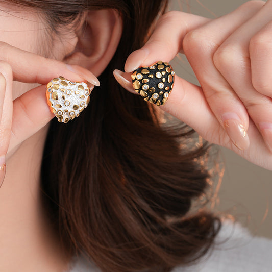 Gold Plating Silver Needle Zircon Dripping Oil Love Heart Earrings Autumn