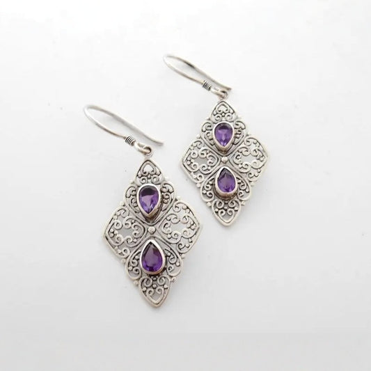 Metal Hollow Ancient Silver-plated Inlaid Purple Zircon Earrings