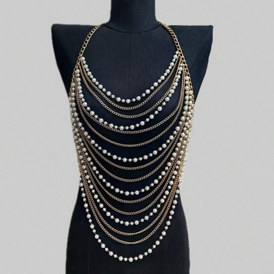 Pearl Ornament Chain Metal Chain Multi-layer Catwalk Performance Bandage Dress