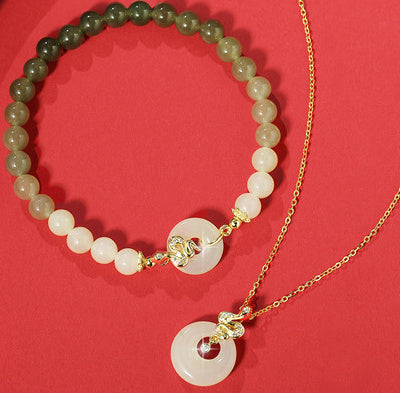 Peach Blossom Hetian Jade Bracelet Sterling Silver