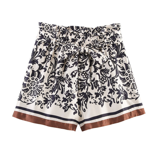 Summer New Elastic Waist Drawstring Knotted Short Solid Color Casual Women