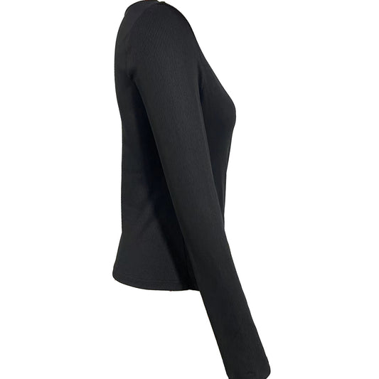 Ladies' Fashionable Solid Color Premium Cross V-neck Sexy Elegant Long Sleeved T-shirt Top