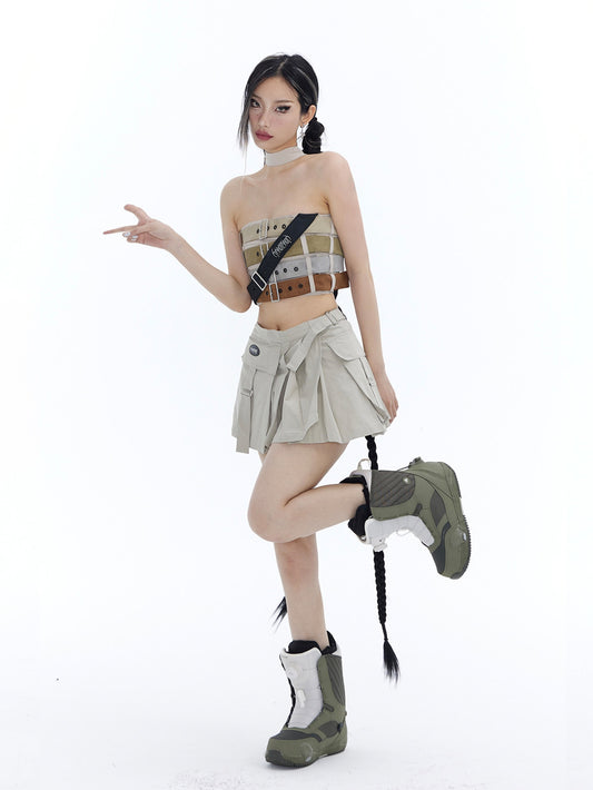 European And American Leisure Simple Tube Top Wooden Ear Shorts Suit