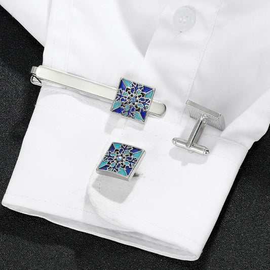 Creative Blue Pattern Cufflinks Men And Women Business French Shirt Cufflinks Tie Clip Accessories Gift Box