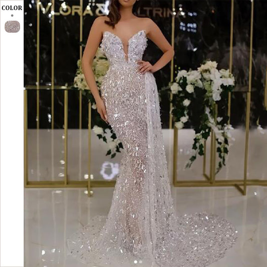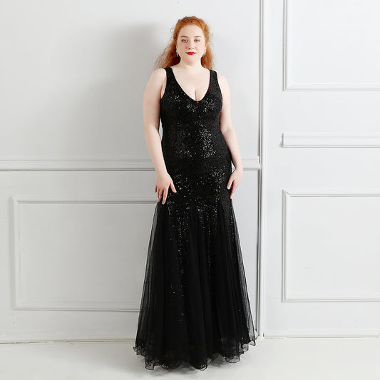 Hot Sale Front And Back V-neck Sequined Floor-length Dovetail Dress