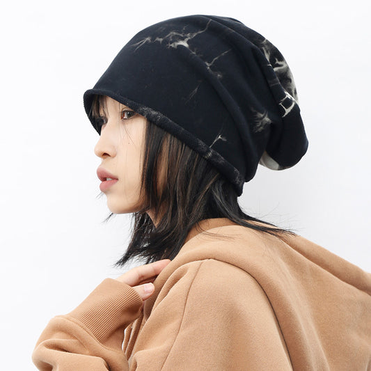 Autumn And Winter Tie-dye Black Pile Hats For Men And Women