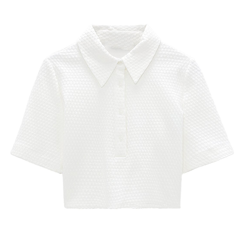 Cropped Short White Top With Short Sleeves
