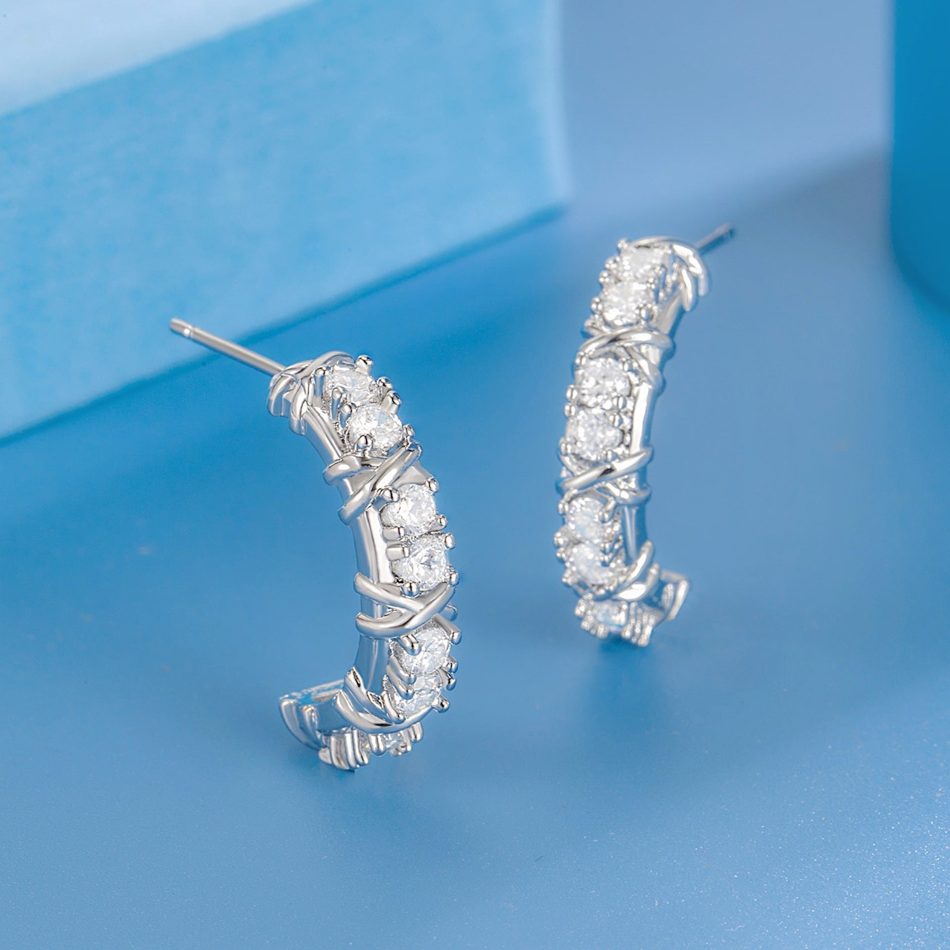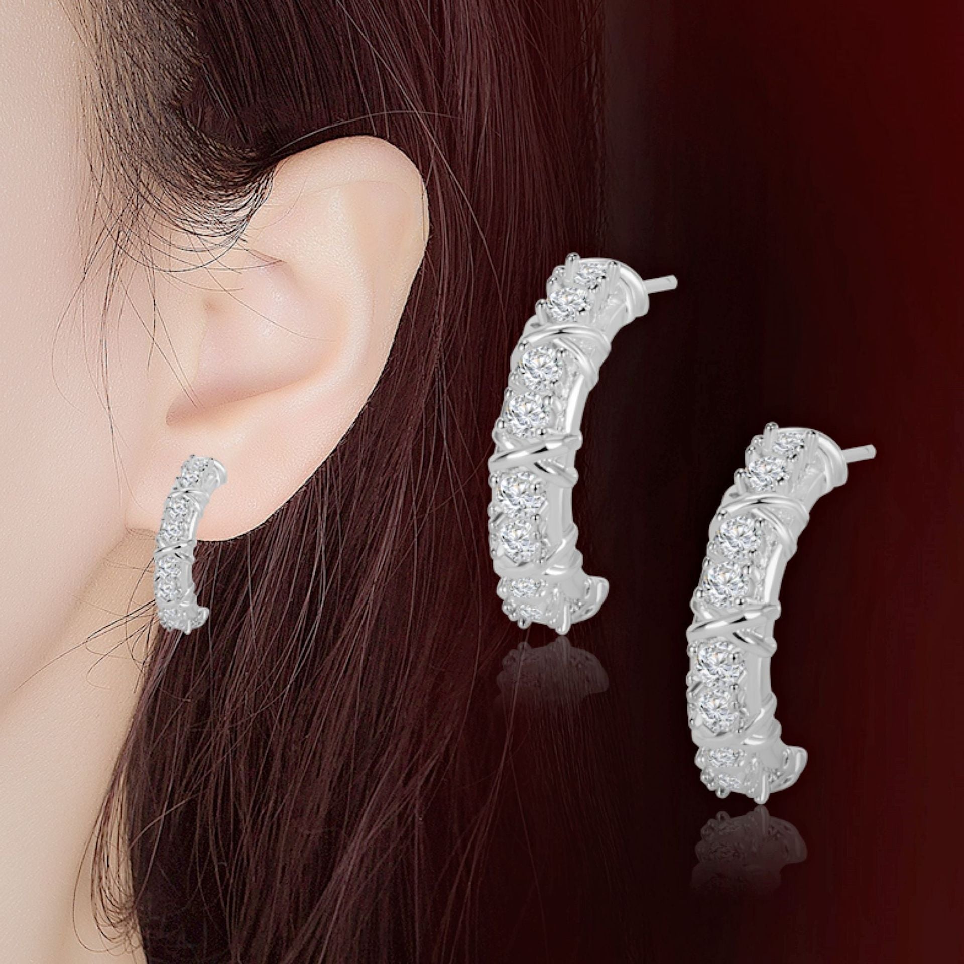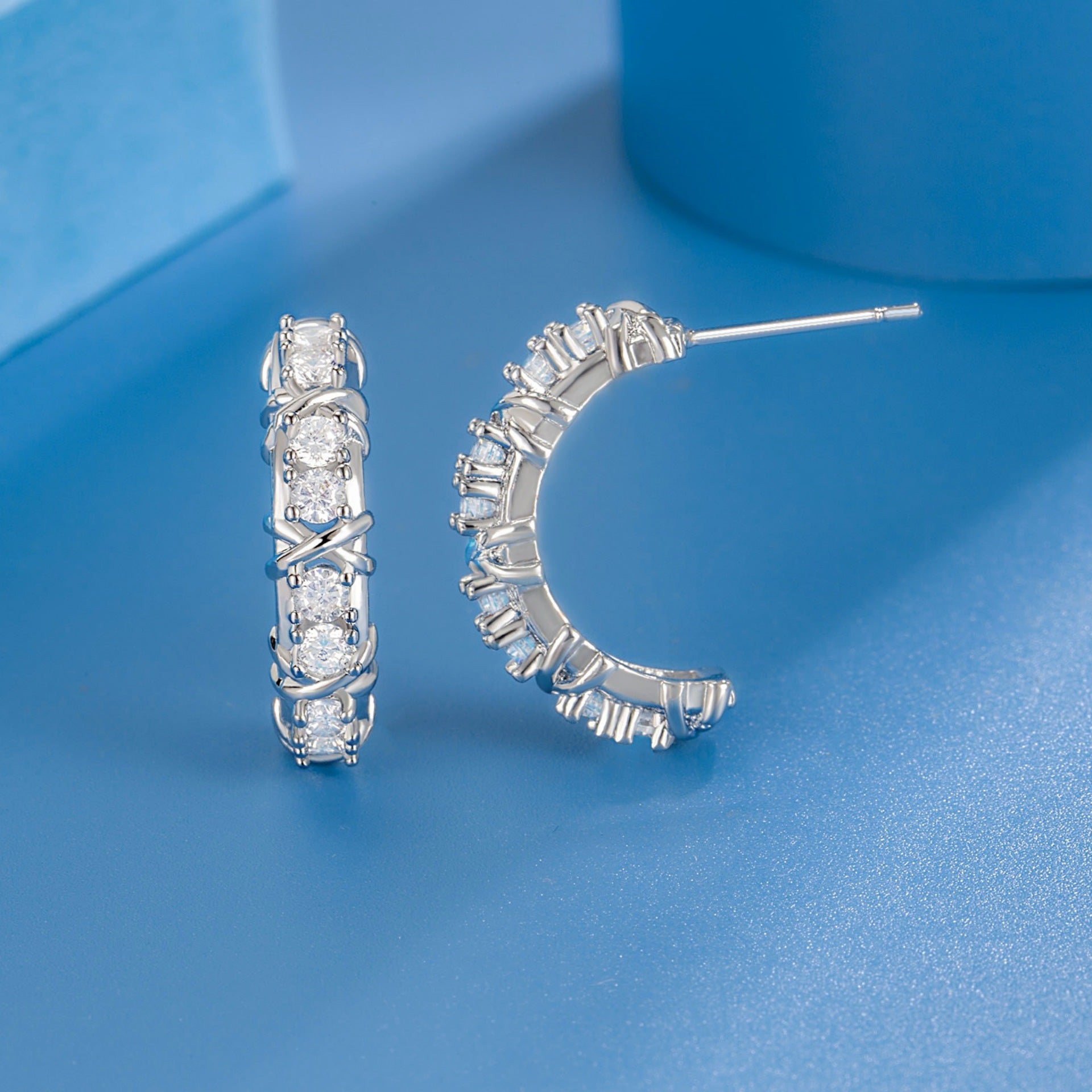 Color: Cross stud earrings [two-tone gold plated], cross stud earrings [white gold color], cross stud earrings [rose gold], cross stud earrings [gold], cross stud earrings [two-tone gold plated]], cross ear clip [platinum color], cross ear clip [rose gold], cross ear clip [gold]]