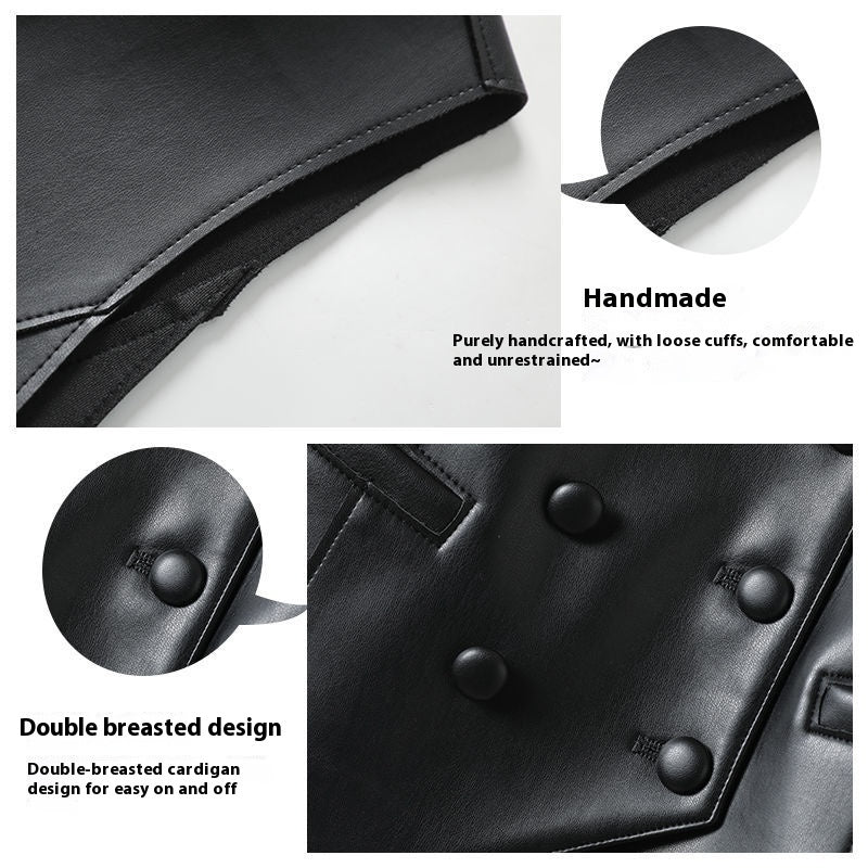 Leather Coat Western Style Double Breasted Vest Short Slim Fit Slimming