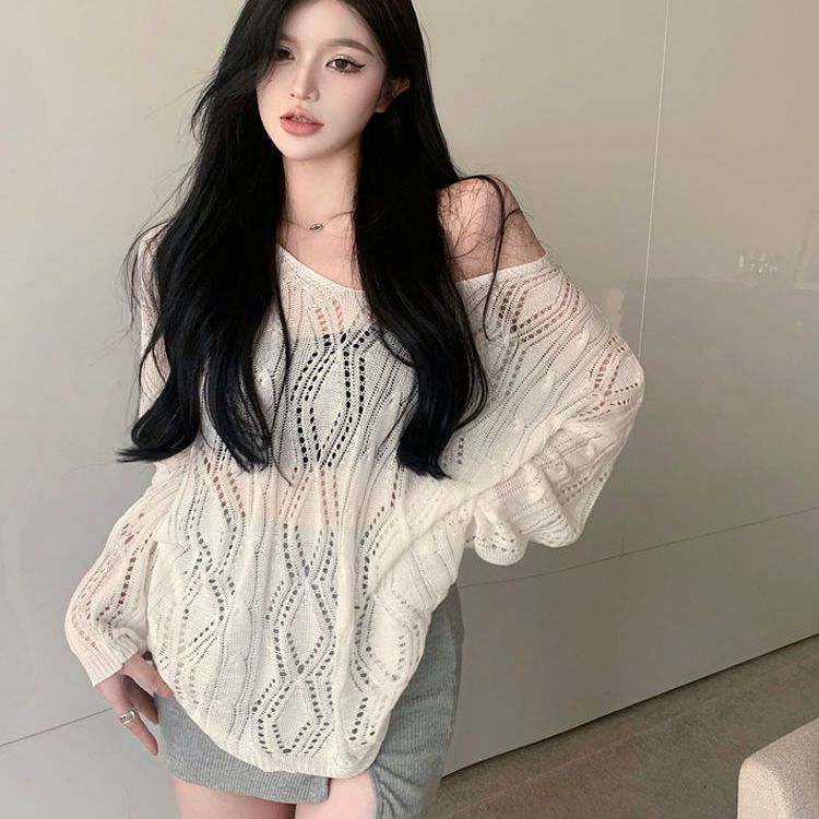 New Hot Girl Hollow Out V-neck Sun Protection Sweater Women