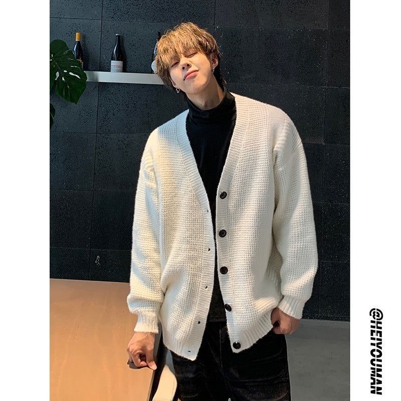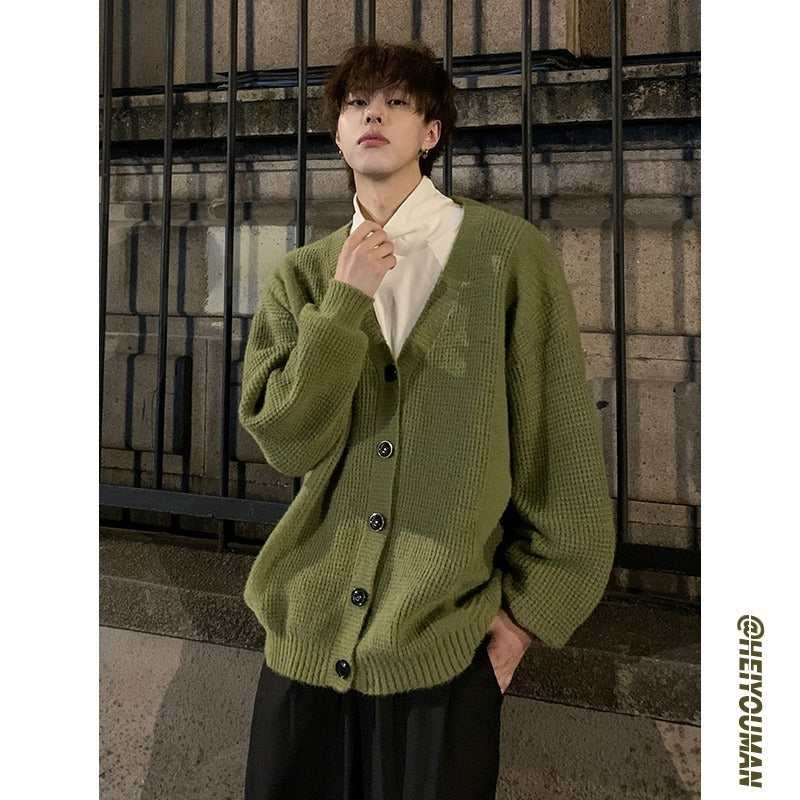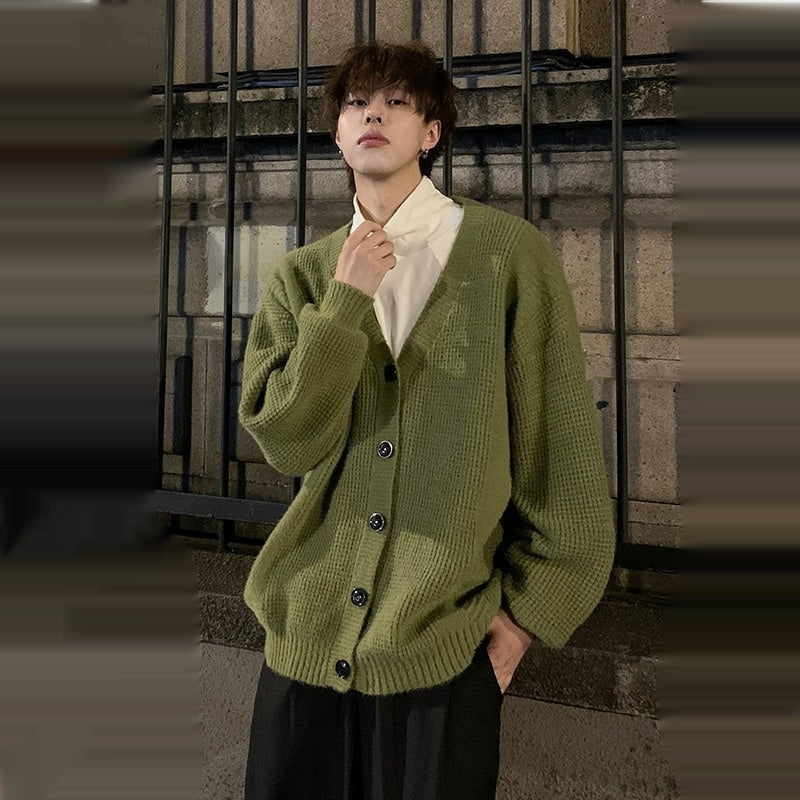 Retro Simple Solid Color And V-neck Men's Knitting Sweater