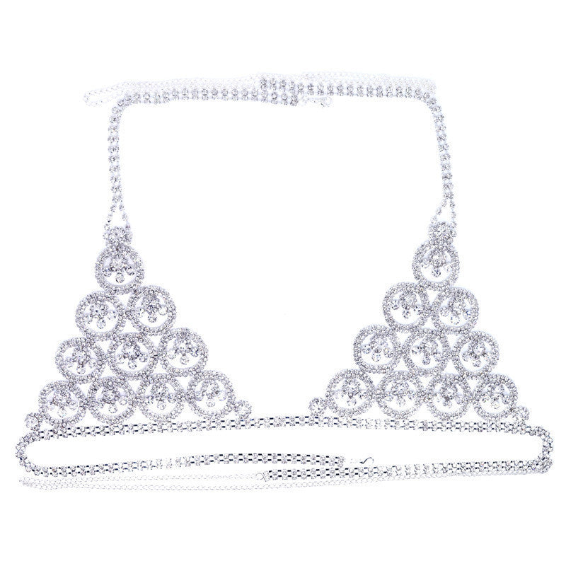 Round Rhinestone Body Chain European And American Sexy Beach Bikini Breast Chain Women