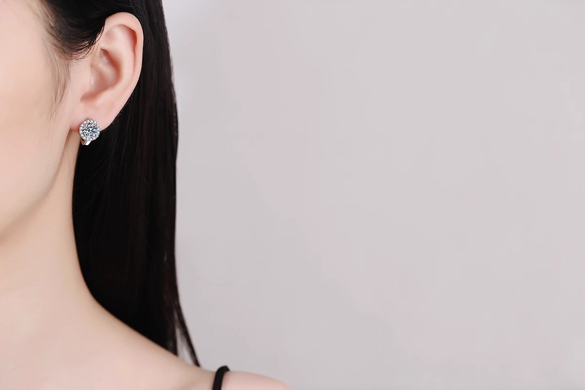 S925 Sterling Silver Moissanite Earrings For Women SUNFLOWER Ear Clip
