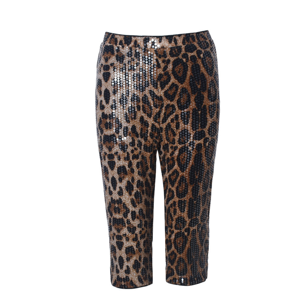 Sequined Leopard Print Elastic Waist Casual Shorts