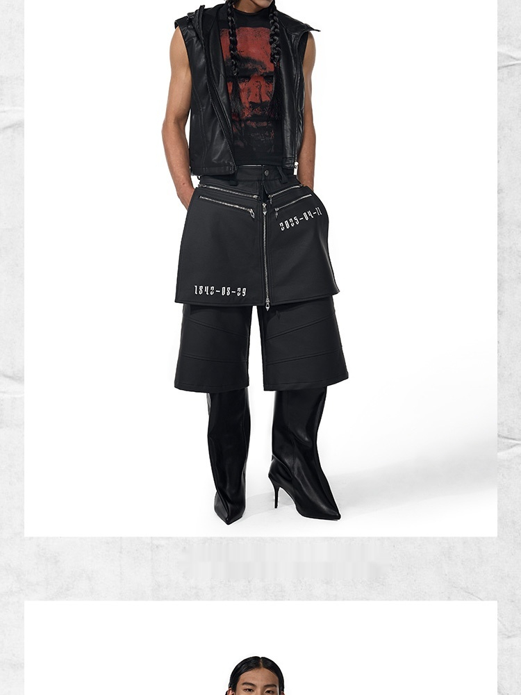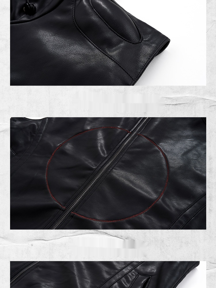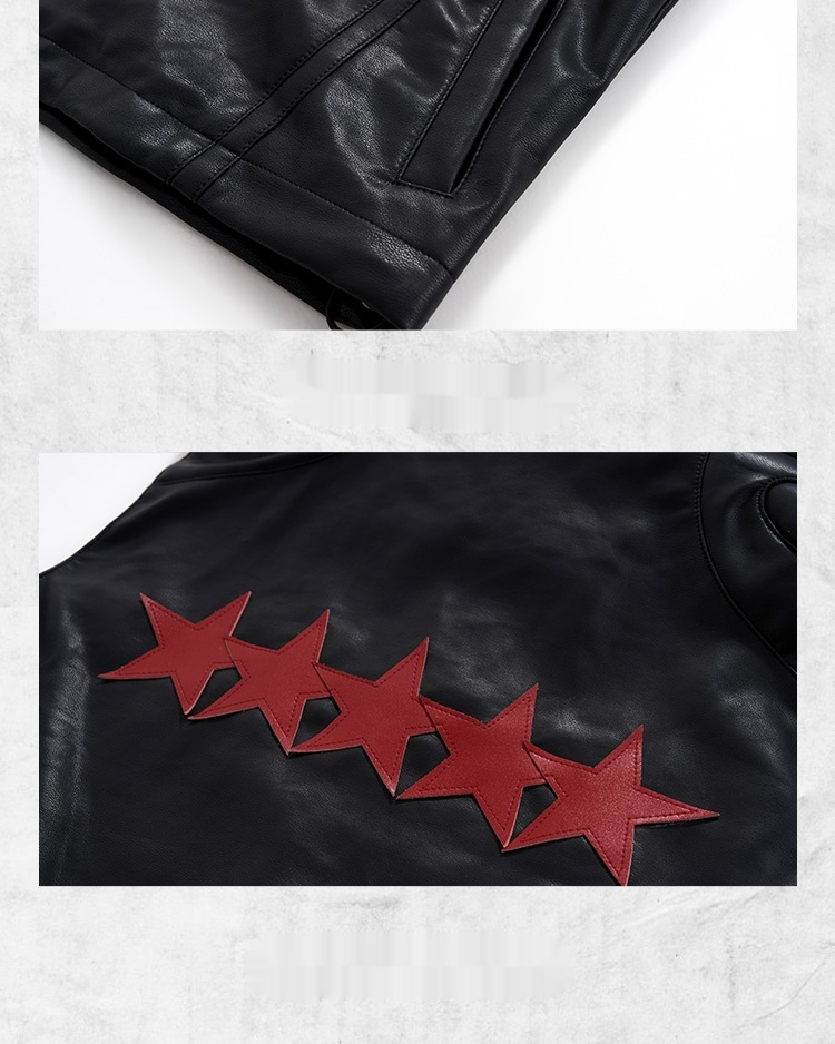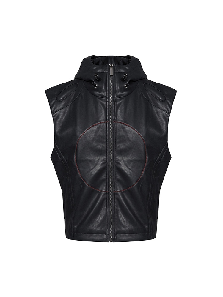 Short Hood Slim Fit Leather Waistcoat Coat Men's Summer Five-pointed Star PU Leather