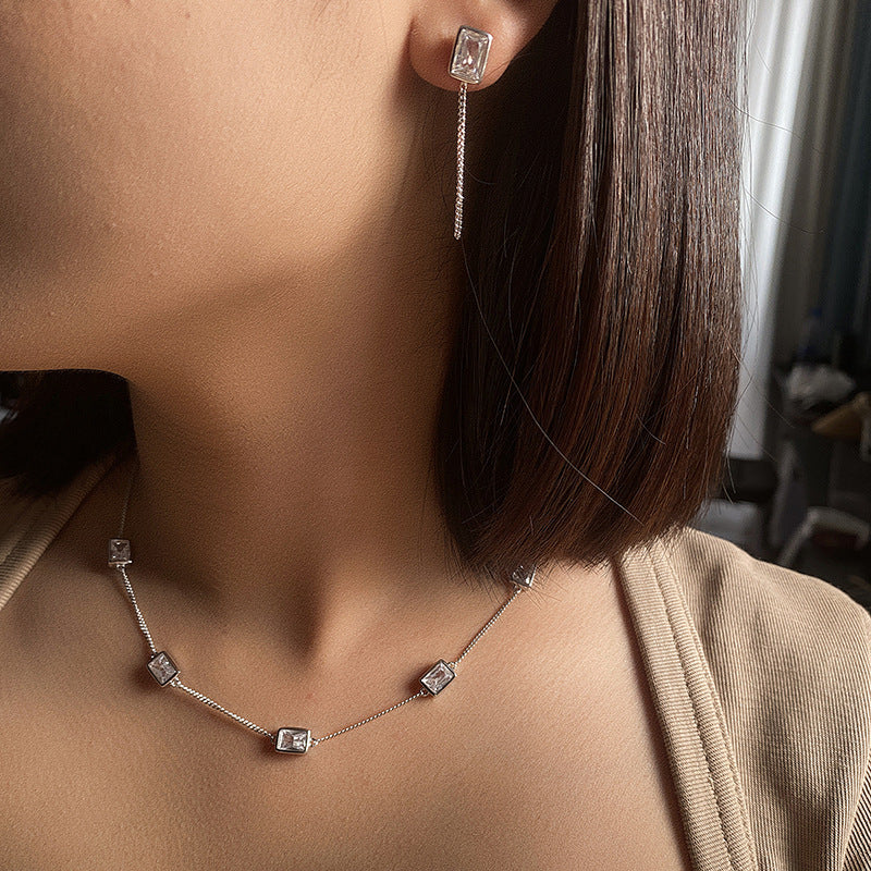 Simple Gold-plated S925 Sterling Silver CZ Zircon Rectangle Women's Suit Jewelry