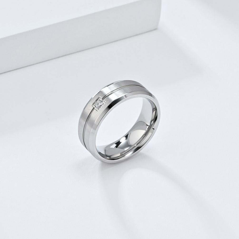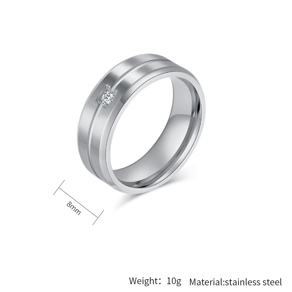 Simple Style Titanium Steel Carved Inlaid Zircon Single Diamond Men's Ring