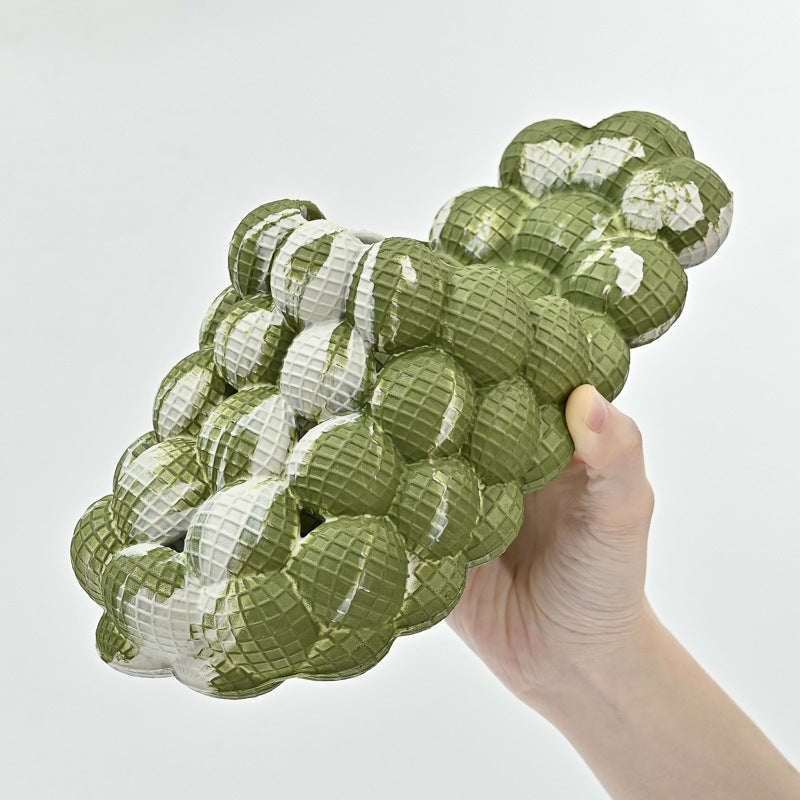 【Comfortable Round Toe】The smooth round toe slides with excellent foot support, liberate your feet, and the foam insole slightly reduces the pressure while walking and standing. Wear these lychee bubble slippers after playing basketball, super comfortable and relaxed.