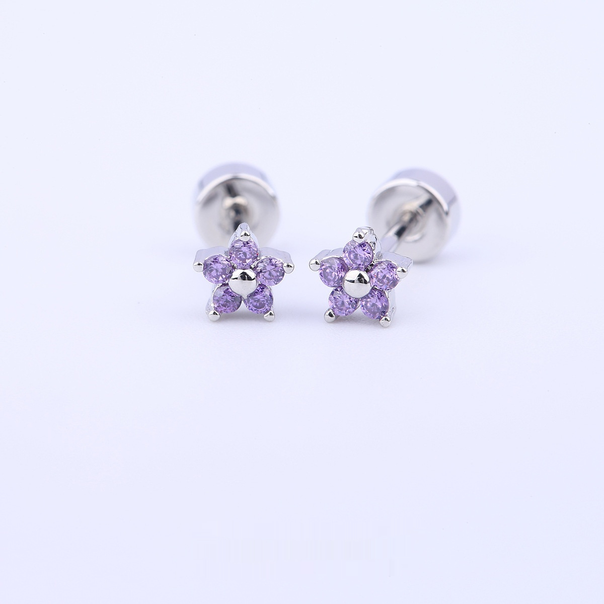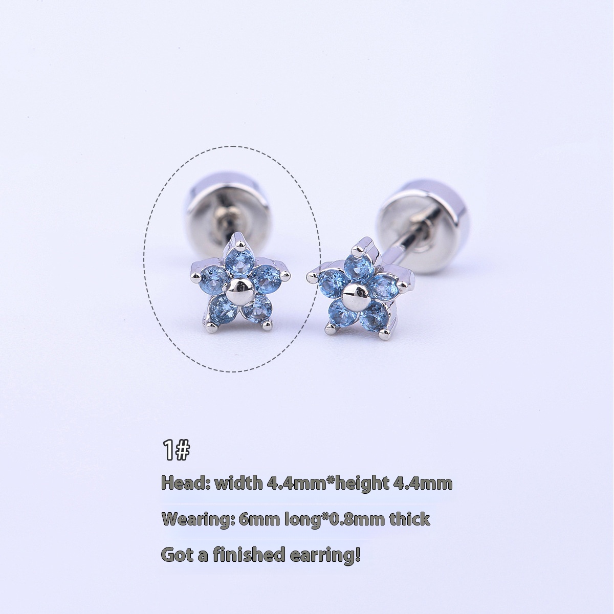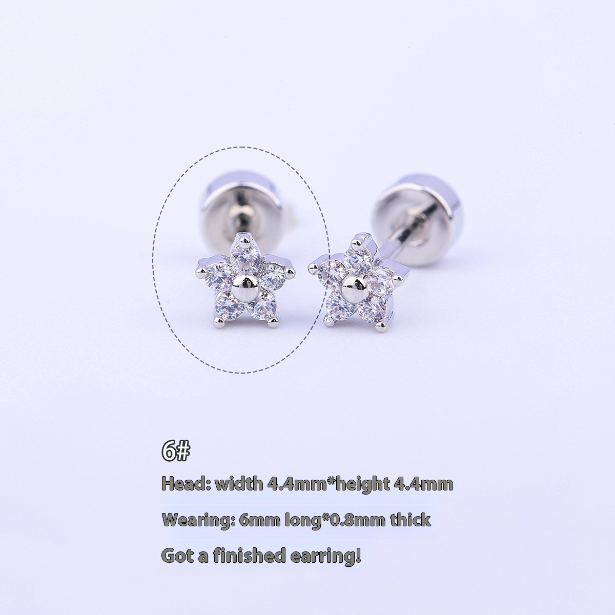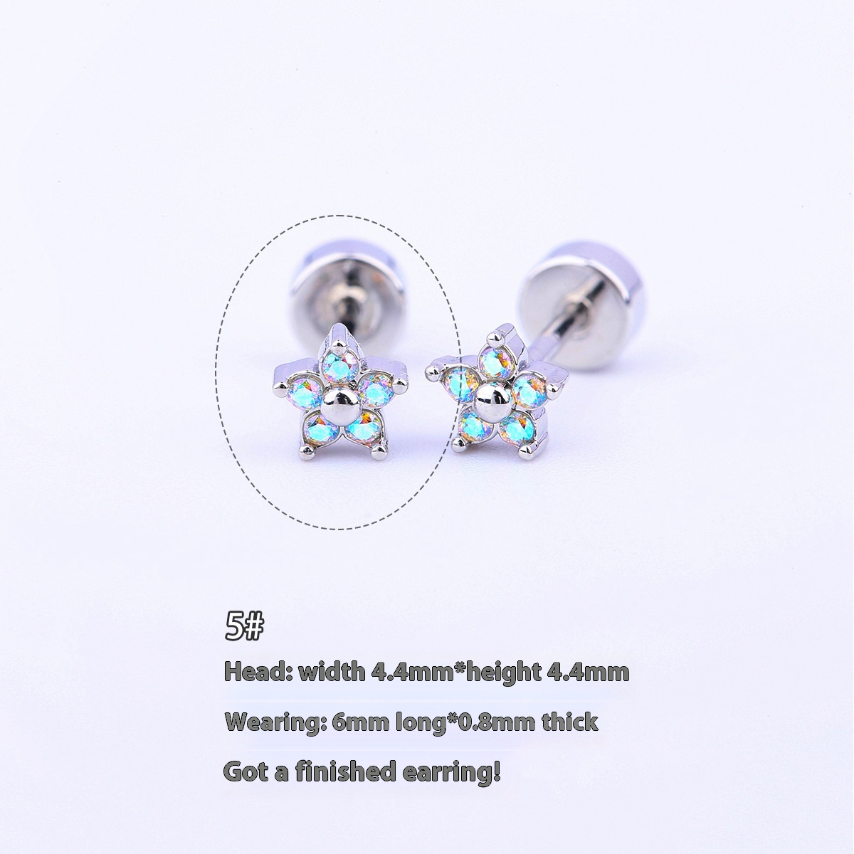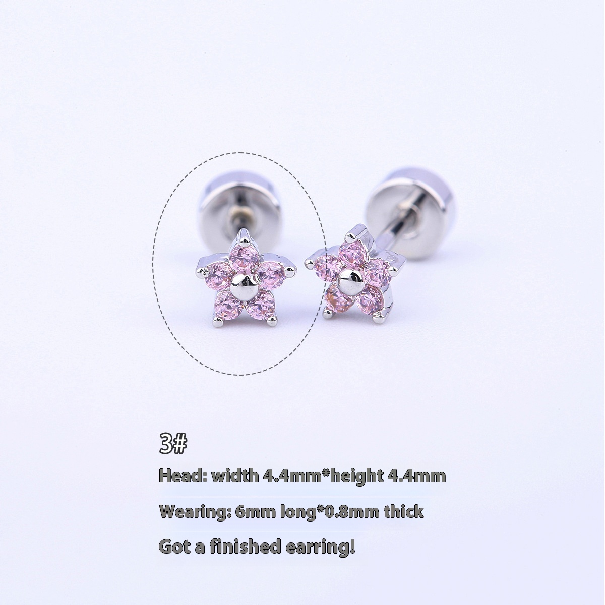 Titanium Steel Copper-plated Gold Micro Inlaid Zirconium Five-petal Plum Flower Ear Studs