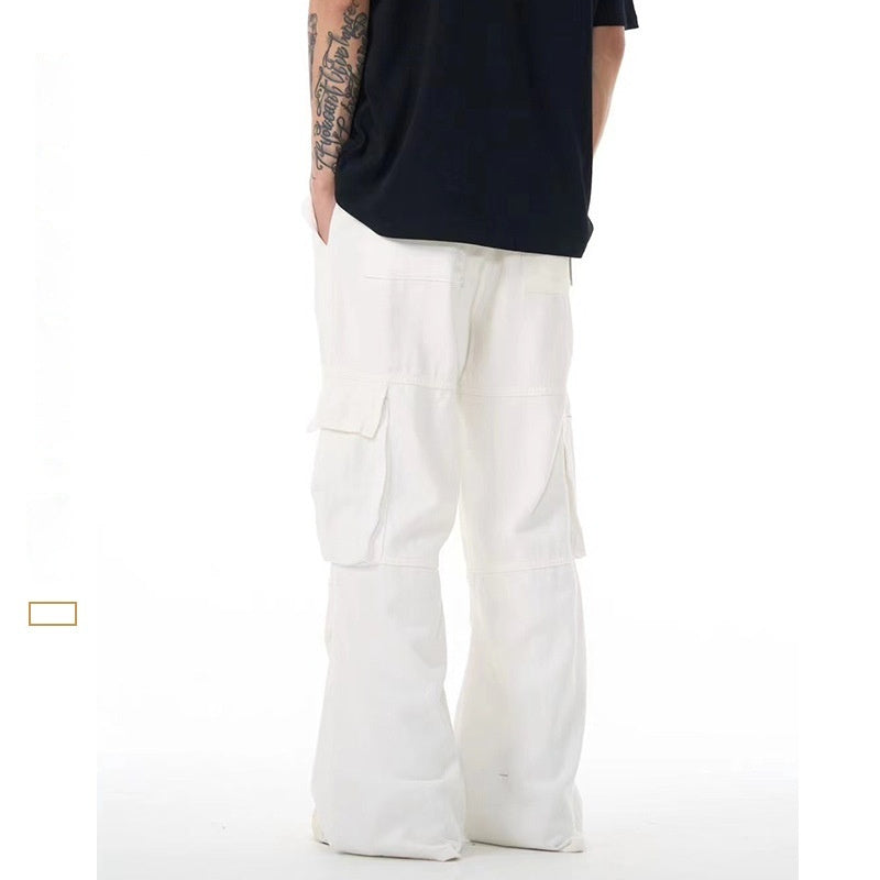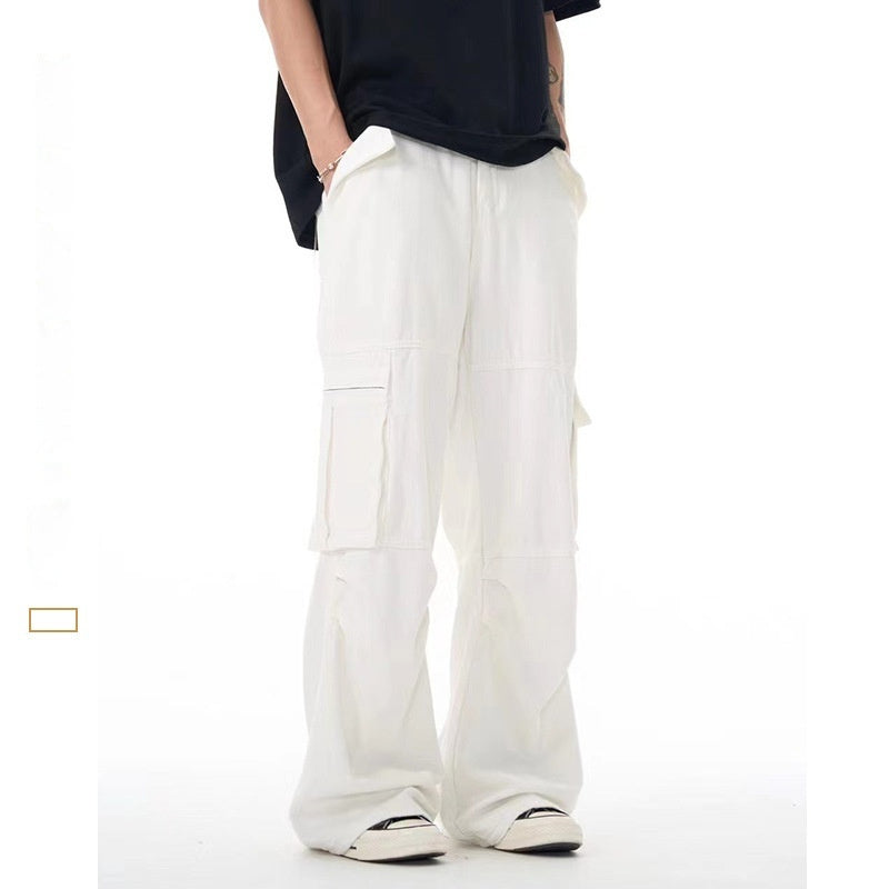 White Casual Three-dimensional Pocket Straight Summer New Loose Flared Trousers
